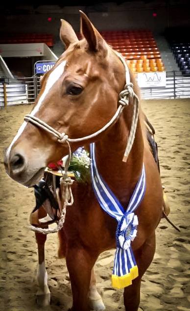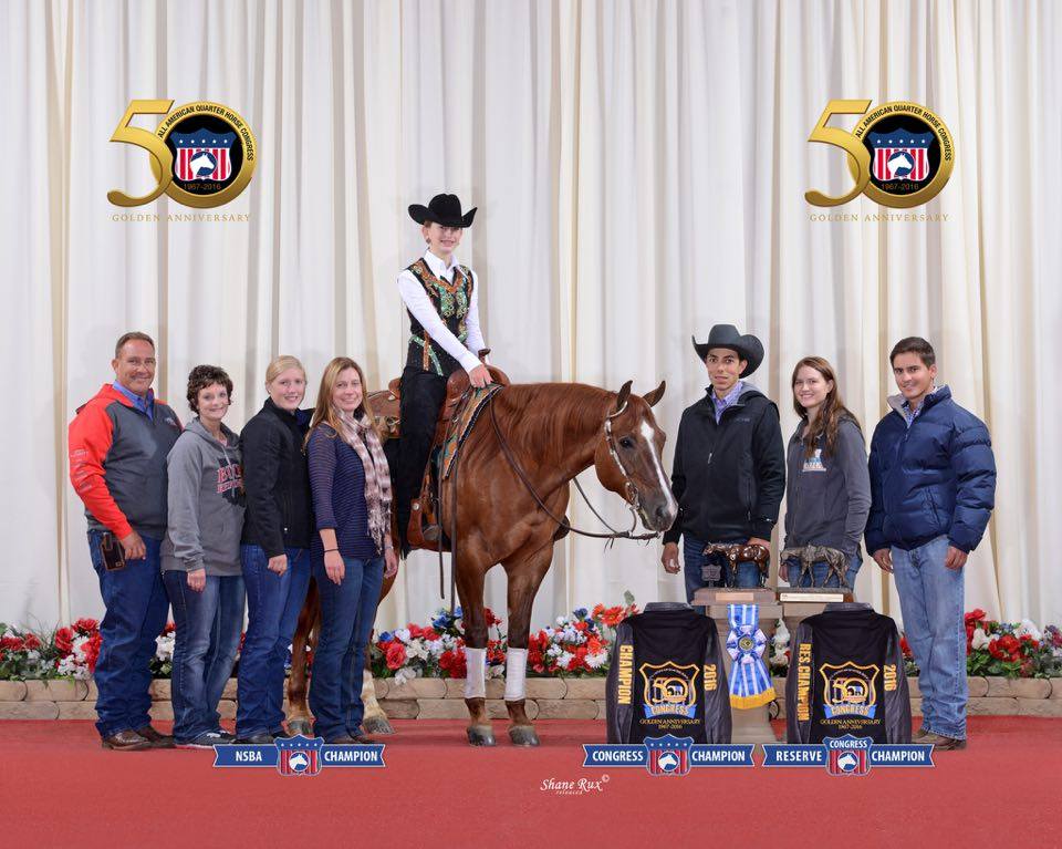 honor in both the AQHA and the NSBA Junior Green Trail classes. The gelding was ridden by Joni K Naas, of