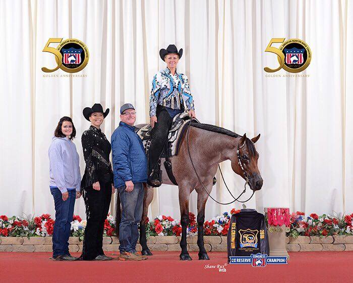 “Mo Faye Rey” were reserve champions in the NCHA $5,000 Novice Non-Pro Cutting.