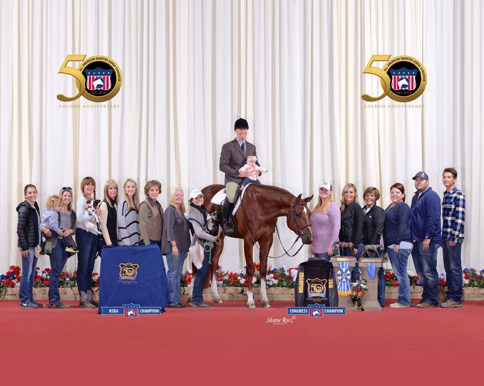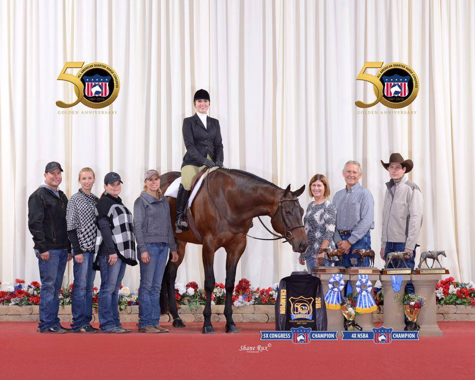 Wilmington, N.C., took both the AQHA and the NSBA Amateur Select Huntseat Equitation and titles on “Pawn Star.” Balkcum also earned her first Congress all-around title with the Amateur Select High Point award.