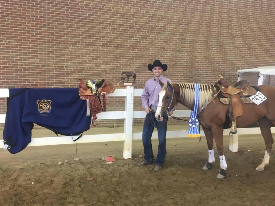 Driving with trainer Charlie Cole, of Highpoint Performance Horses in Pilot Point, Texas. He also won the AQHA and the NSBA Junior HUS, as well as the NSBA Maturity Open HUS Stakes with trainer Beth Case, also of Highpoint