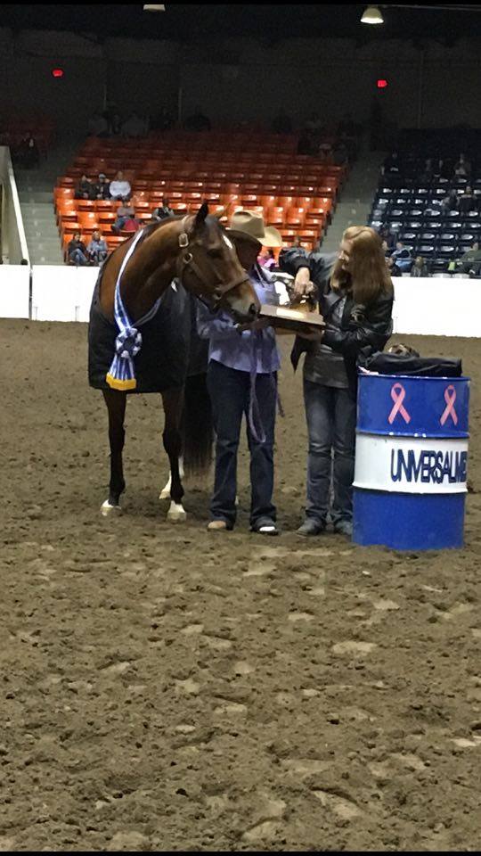 Lyndsey Cruise, of Georgetown, Ky., and “Made By Magnum” won the NRHA (National Reining Horse Association) Non-pro Reining.